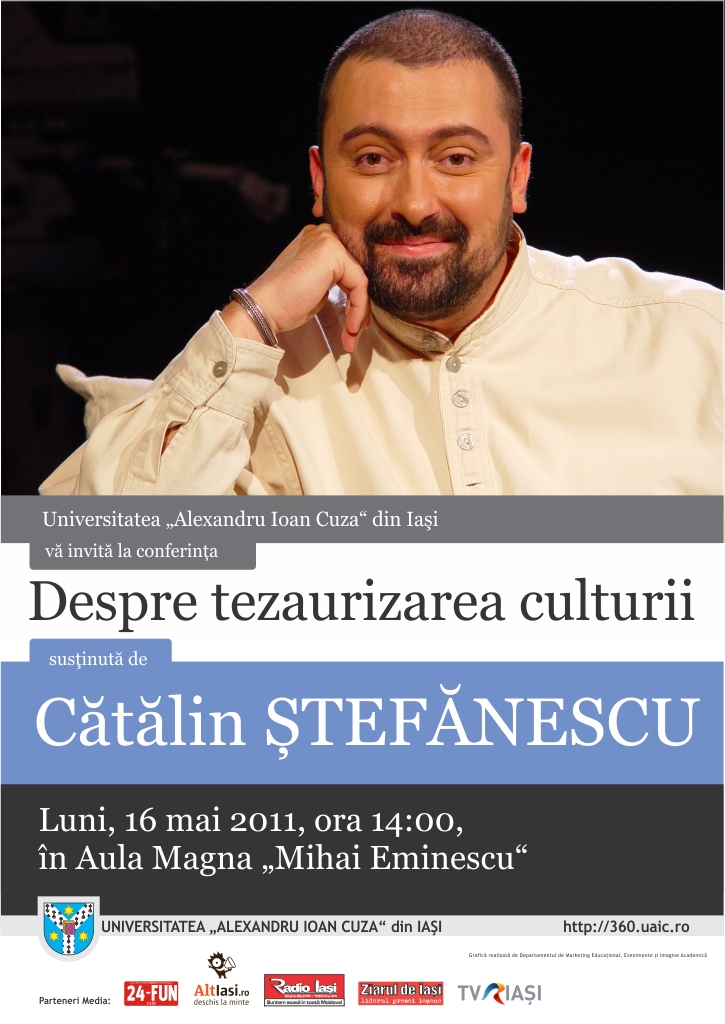 Conferinta are ca tematica tezaurizarea culturii, prin intermediul careia publicul va afla cum poate fi cultura valorificata la stadiul de tezaur. Este cea de-a cincea persoana invitata sa sustina o conferinta la Cuza, in cadrul seriei de dezbateri initiate de universitate.