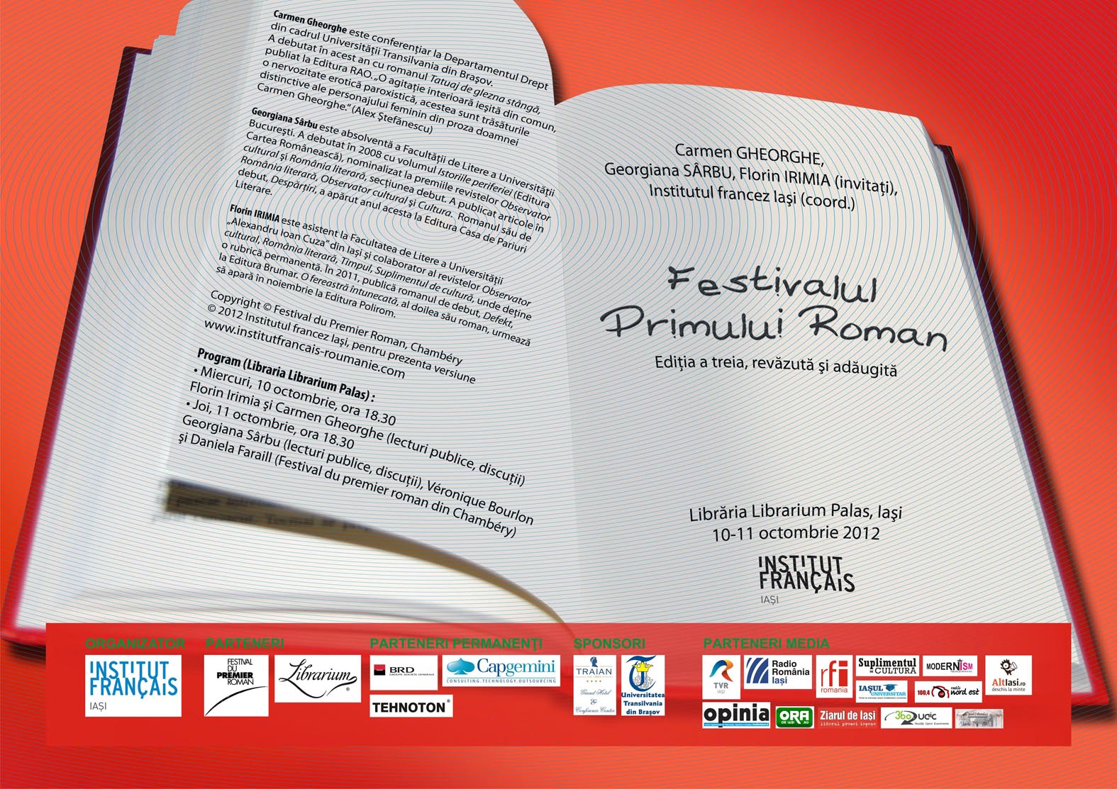 Anul acesta Librarium Palas este locul in care se tine Festivalul Primului Roman, eveniment matur deja in spatiul francofon, dar si european in general. Regulile au ramas neschimbate: simpatiile publicului au in continuare prioritate, acesta alegandu-si invitatii fiecarei editii. Astfel, miercuri si joi, adica pe 10 si 11 octombrie, incepand cu ora 18:30, ne vor vorbi despre prima lor naratiune de dimensiuni serioase Florin Irimia, Carmen Gheorghe si Georgiana Sarbu, festivalul-sursa de la Chambery trimitand ca reprezentanti la Iasi pe Veronique Bourlon si Daniela Faraill. Se anunta doua seri de pomina!