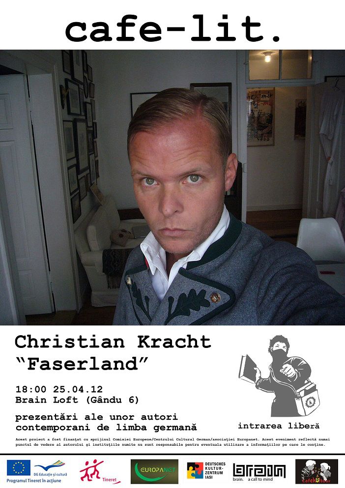 Tot pe Konstantin Behrends il gasim miercuri seara, 25 aprilie, incepand cu ora 18, prezentand un autor de limba germana in cadrul cafe-lit., in Brain Loft. Schimbat e doar autorul adus in discutie: de aceasta data Christian Kracht si romanul sau de debut, Faserland, vor primi toata atentia noastra.