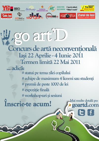 „GoArt’d este un concurs de arta tridimensionala dedicat tinerilor ieseni, mai exact liceenilor si studentilor, care isi propune sa promoveze arta neconventionala. Mai precis, concursul presupune realizarea unor lucrari de arta tridimensionala de catre echipe de 2, maximum 4 membri, in acord cu tema zilei copilului.