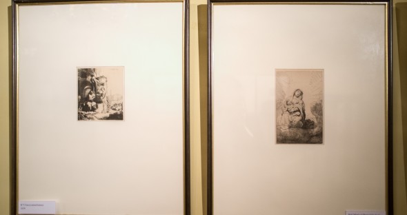 Gravurile aduse la Iasi prezinta cu precadere scene biblice. Cu toate ca Rembrandt era protestant si considera derutant cultul sfintilor practicat intens de catolici, a omagiat anumite personaje biblice importante, cum ar fi apostolii, evanghelistii, profetii si mai ales pe Fecioara Maria.