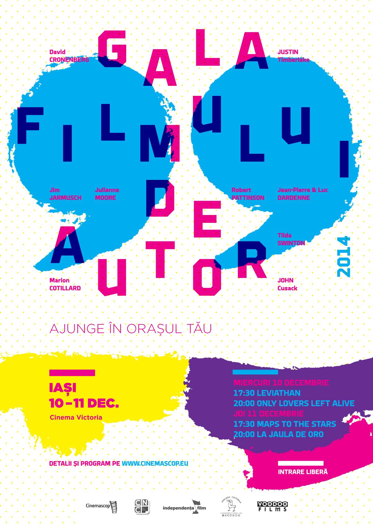 Desi nu mai avem sali de cinema in care filmul de autor sau filmul documentar sa fie proiectate corect, Iasiul va gazdui pentru doua zile Gala filmului de autor. Evenimentul este organizat de Asociatia Cinemascop, cea care realizeaza Festivalul Les Films de Cannes a Bucarest, adica de Cristian Mungiu si echipa sa. Miercuri si joi, 10-11 decembrie vor avea loc patru proiectii, incepind de la 17:30 si 20 in ambele seri cu filme premiate si nominalizate la Cannes. Intrarea este libera, speram sa fie si caldura, pentru ca filmele sint musai de vazut!