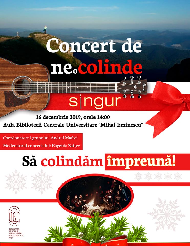 Grupul „Singur” va concerta pentru prima oară pe data de 16 decembrie 2019, orele 14:00, în Aula Bibliotecii Centrale Universitare „Mihai Eminescu”. Repertoriul cuprinde o serie de colinde inedite ce combină aspectele tradiționale cu cele moderne, respectiv o serie de colinde binecunoscute, ambele urmând să fie interpretate vocal-instrumental.