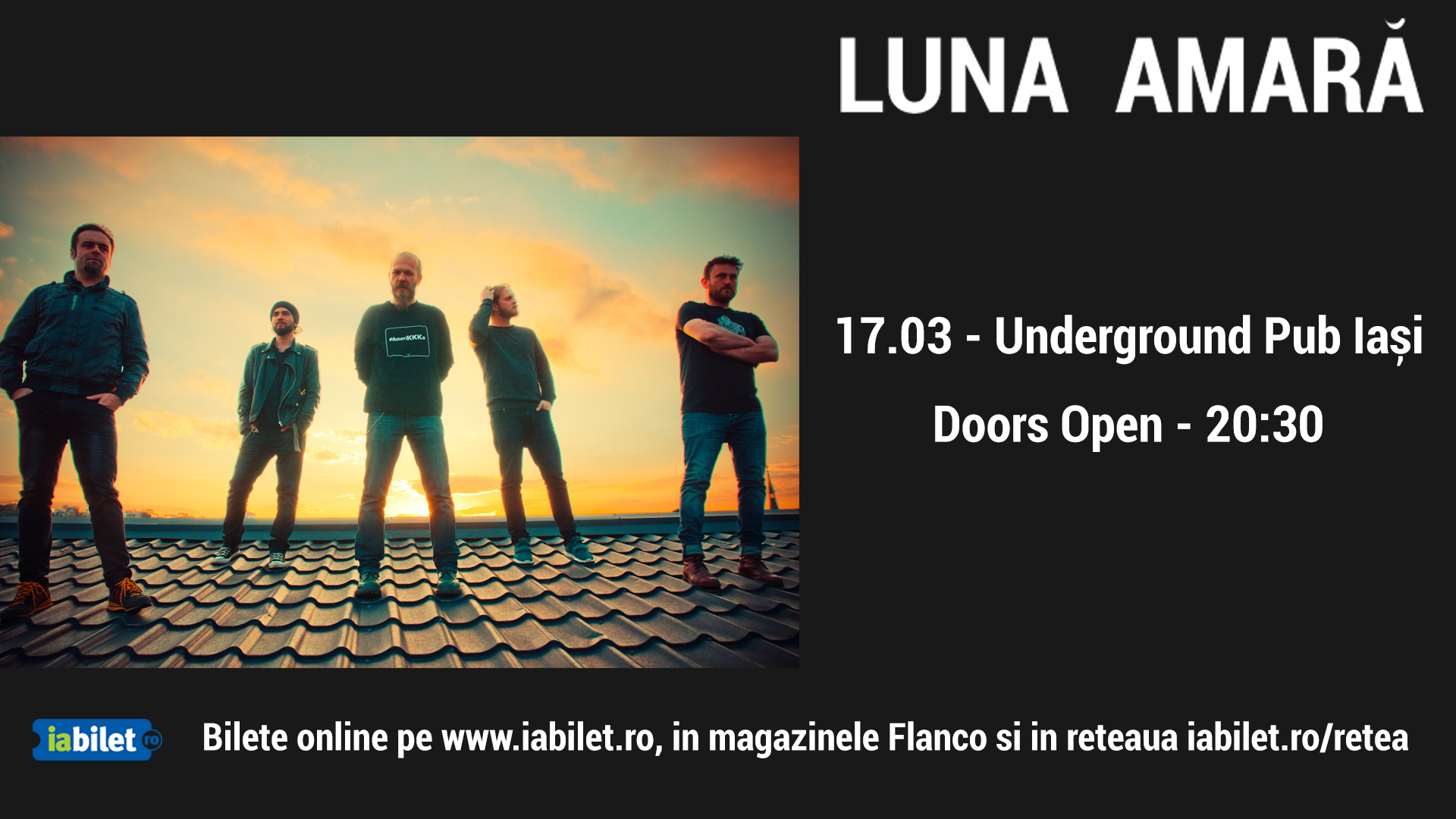 Sâmbătă, 17 martie, Luna Amară ne invită la unicul concert din aceasta primavară în care să ne lăsăm duşi de valul versurilor unor oameni cât se poate de normali ce reuşesc să aducă prin muzica lor euforia unor clipe ascunse de nelinişti.