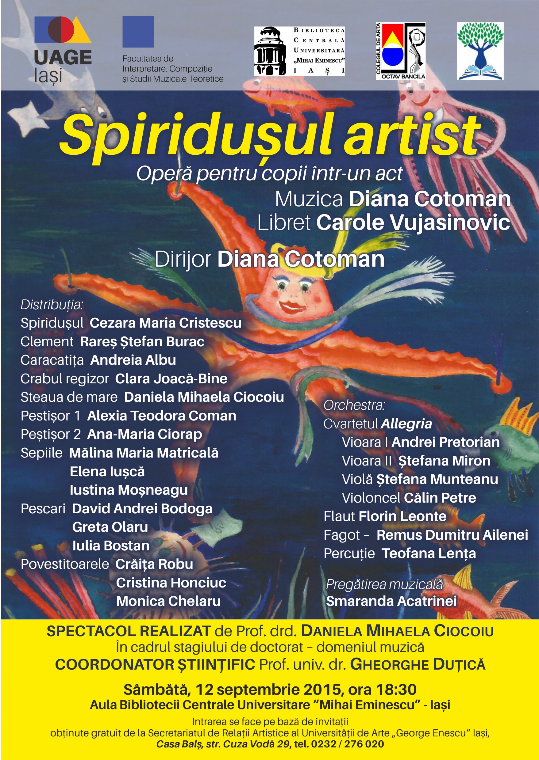 „Spiridusul artist” este o opera pentru copii interpretata de copii, elevi ai Colegiului National de Arte „Octav Bancila” din Iasi, Scolii Paradis si Scoala „Stefan Barsanescu” Iasi.