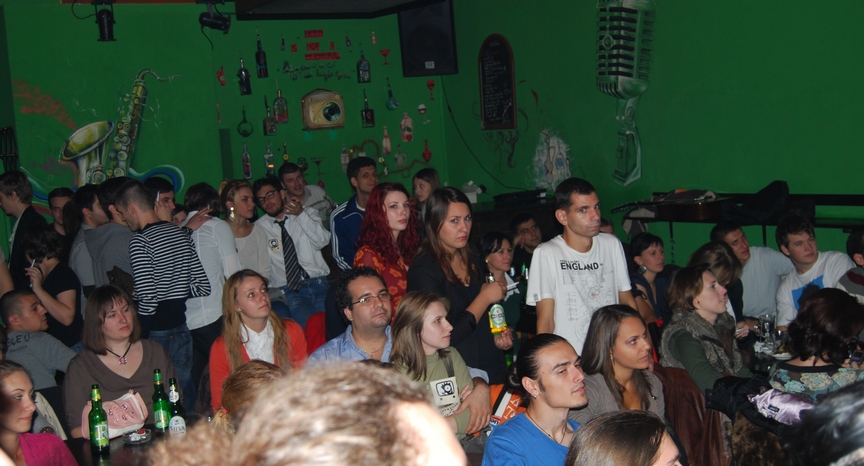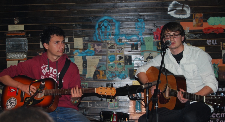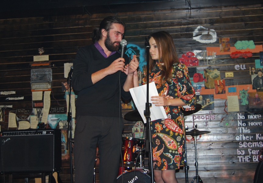 V-ati putut juca de-a scriitorii toata seara, asa ca ma voi intoarce la ordinea evenimentelor. Doua chitare si doi baieti - Marius Mitrofan si Radu Soroceanu – au fost suficienti pentru ca tinutele sa se destinda si mai bine; pe ici pe colo se tinea din picior un ritm, se legana subtil capul. Cam 8 piese si deja lumea traia petrecerea. Se aplauda, mesele se aglomerau de beri si sucuri, iar scrumierele se umpleau. Ne mutam acum in camera de la intrare: oamenii care nu nu aveau loc in preajma scenei faceau poze cu mascota AltIasi. O parte din ei au ratat momentul rezervat trupei de teatru Ludic. Printre ei, si eu. I-am ascultat, dar lipsa criteriului vizual m-a cam pierdut. Dar oamenii se miscau incontinuu, de aceea presupun ca accesul in zona apropiata scenei s-a facut cu randul. Asa ca sigur l-au ascultat si vazut si pe Ursulet, care ne-a adus in principal muzica romaneasca, dar care a fost parte si dintr-un mic complot, surprinzandu-ne pe toti, inclusiv pe noi, cei din AltIasi, cu duetul sau alaturi de colegul nostru, Dragos. A fost, e clar, unul din momentele serii - sper, suficient de puternic pentru a anula impresia sub care s-a intrat odata cu problemele tehnice care ne-au dejucat planul de a proiecta un montaj al celor de la Rofilco. La fel li s-a intamplat si „colajelor” cinematografice ale lui Iosif. Incordarea era indreptatita in ceea ce ne priveste, cu toate ca publicul a avut rabdare. Nu s-a fluierat, nu s-a exagerat in reactii – era un public altfel.