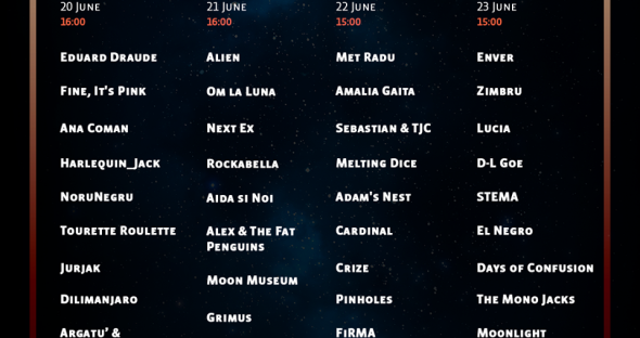 Vineri, continuăm cu Aida și Noi, om la lună, NEXT EX, Rockabella, Alex & The Fat Penguins, Moon Museum, Grimus, Zoli TOTH.