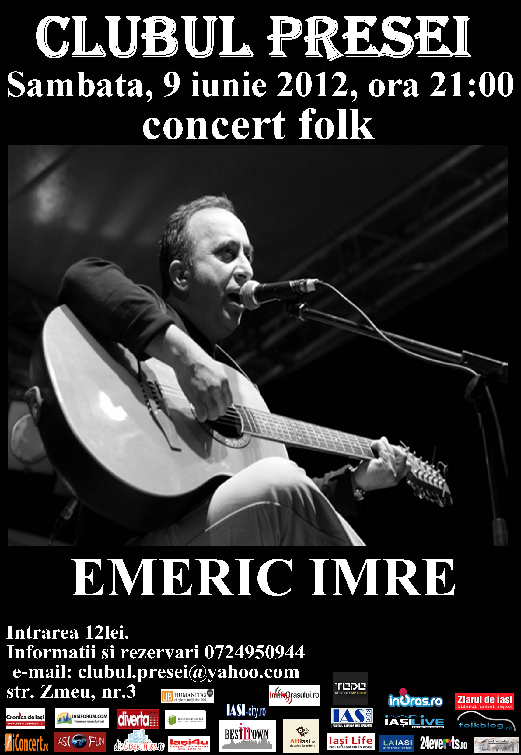 Nu se poate sa iti fie dor de folk si sa nu vrei sa fii si Nebun de alb cu Emeric Imre. Asta ne transmit cei de la Clubul Presei care l-au invitat pe cunoscutul interpret sa sustina un concert la Iasi sambata, 9 iunie, de la ora 21.