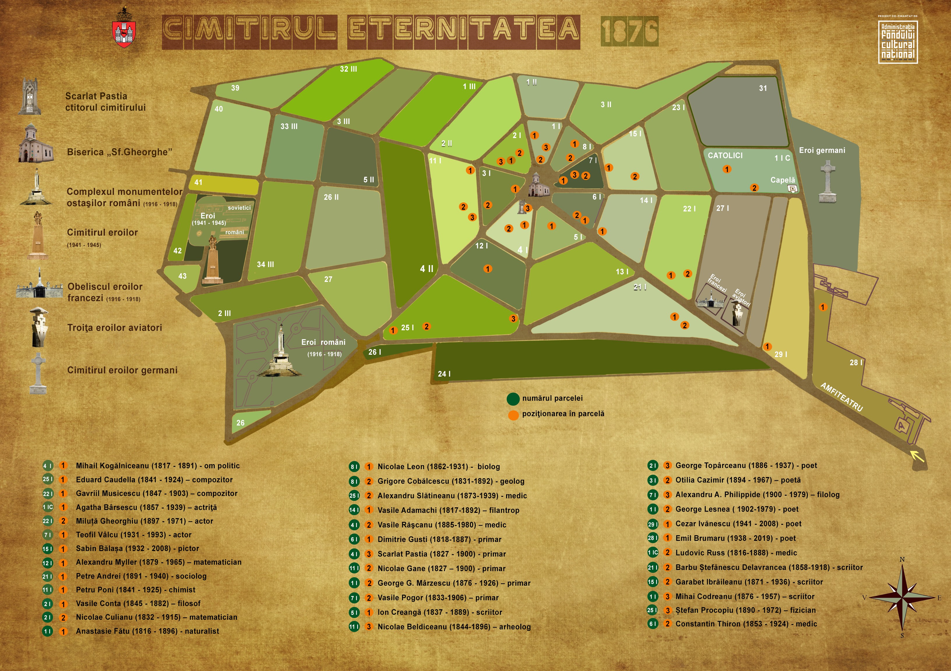 Dimitrie Gusti (24 octombrie 1818, Iași — 25 martie 1887, Iași) om politic, poet, traducător, primar al Iașului. Localizare mormânt – parceala 6/I, rând 1, loc 10.