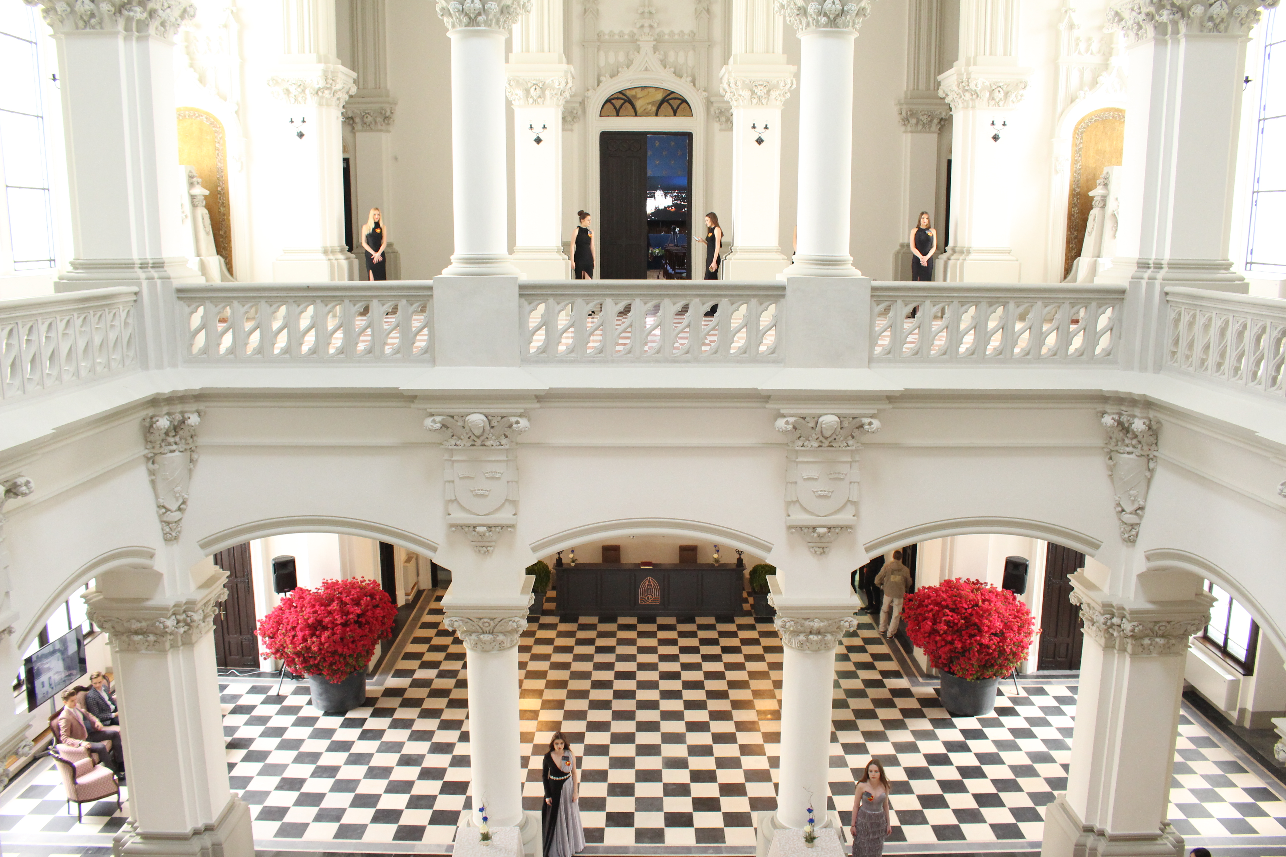 Dupa ce, in fine, am intrat, am observat ca toata lumea era foarte eleganta si mai multe fotomodele imbracate la 4 ace te intimpinau cu un „Bine ati venit!” si o mapa cu citeva materiale promotionale. In rest, in boxele din tot palatul se auzea „Imagine all the people” de John Lennon, iar toata lumea se uita nedumerita si nu stia incotro s-o ia.