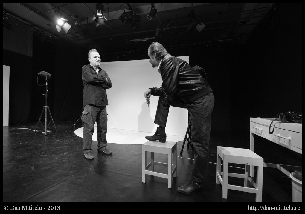 Actorii au beneficiat de o recuzita foarte bine pusa la punct si, aparent, foarte costisitoare: reflectoarele de pe scena, ecranul alb pentru fundalul fotografiilor, gloantele oarbe, pistolul, suportul luminos pentru negativul fotografiilor, aparatul de fotografiat. Decorul minimalist a fost multumitor, scenograful Nicolai Mihaila, impreuna cu asistentul sau, Andreea Spataru, au fost bine inspirati. Este important ca nu s-a recurs la schimbari in aceasta privinta, pentru ca asta ar fi incarcat piesa in asa maniera incit s-ar fi depasit limita suportabilitatii.