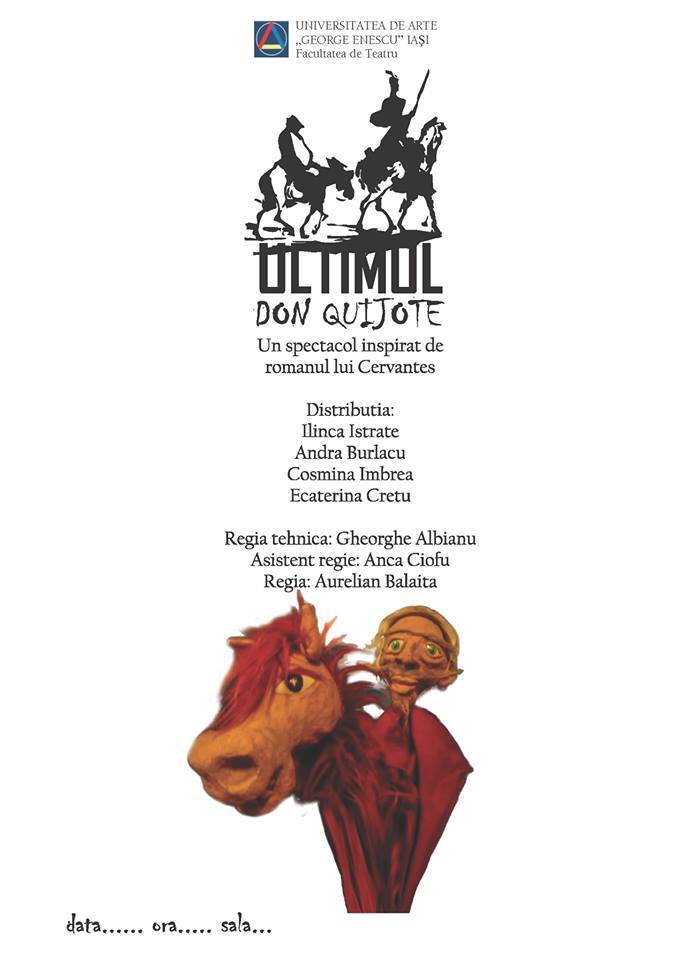*Urmatoarele reprezentatii cu Ultimul Don Quijote vor avea loc in aprilie si mai 2014, la Sala Studio UAGE Iasi.