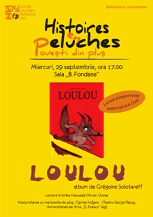 Miercuri, 29 septembrie, de la ora 17.00, Centrul Cultural Francez din Iasi ii asteapta pe cei mici cu o poveste despre prietenia dintre Loulou, un pui de lup si Tom, un pui de iepure.