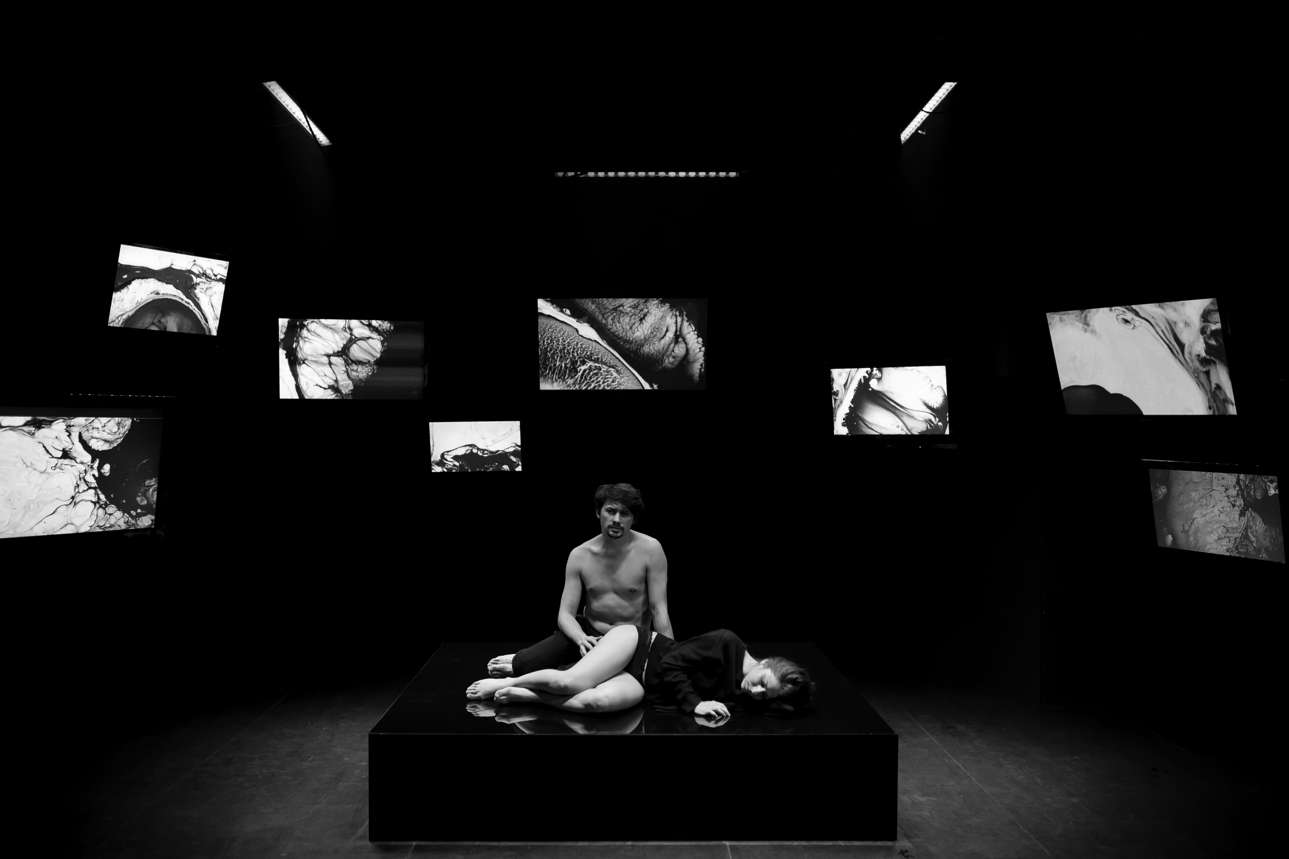 Instalatia audio-video-teatrala (pretentios denumita astfel din punctul meu de vedere) a lasat mai degraba impresia ca s-a creat un hiatus intre scena si sala, hiatus nu in sens negativ, ci unul binevenit prin care imaginea se aplatizeaza cumva, lasand textul si actiunea acestuia sa ajunga intacte la spectator. Theodor Cristian Popescu experimenteaza si vigoarea unui text si subiectul in sine, lucrand aproape insesizabil cu publicul (tocmai prin scindarea aparenta pe care o creeaza intre scena si sala), la nivel de temporalitate si de relationare.