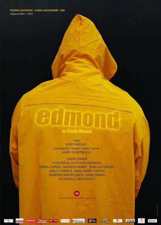 Sambata, 10 martie, la ora 19:00, Teatrul la Cub va gazdui o noua premiera a Nationalului Iesean: Edmond, de David Mamet, in regia lui Vlad Massaci. Update: piesa va mai fi jucata si in zilele de 11, 24 si 25 martie, 8 si 29 aprilie, 13 si 27 mai, de la aceeasi ora. Ultima reprezentatie din aceasta stagiune va avea loc duminica 24 iunie. In stagiunea 2012-2013, spectacolul este programat pentru 29 noiembrie, 7 decembrie, 31 ianuarie, 21 februarie, 23 martie, de la aceeasi ora.