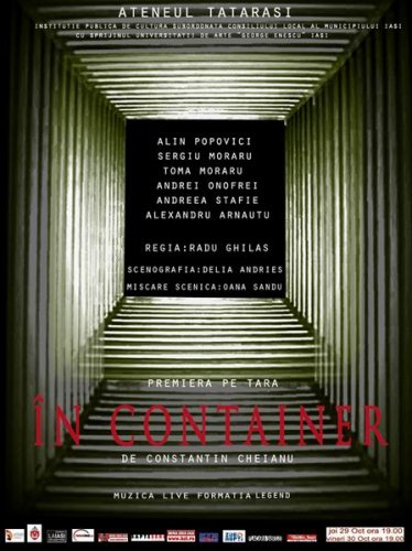 Dupa premiera de saptamana trecuta, maine, 29 octombrie ne asteapta o alta, dar, de aceasta data, la Ateneul Tatarasi. In container este regizata de Radu Ghilas dupa un text al lui Constantin Cheianu, acelasi scriitor basarabean care a scris si textul care sta la baza piesei Made in €st.