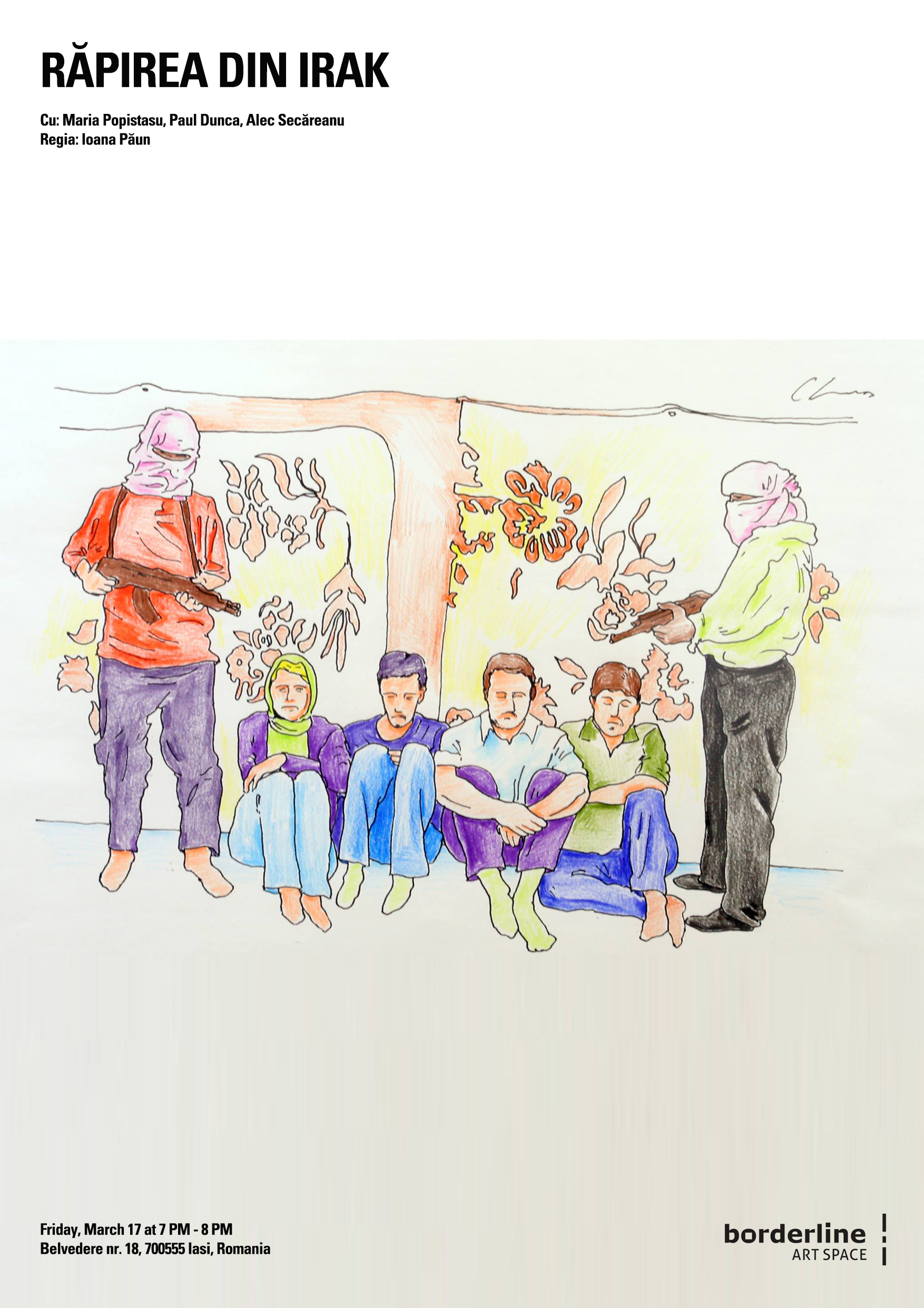 Vineri, 17 martie, de la ora 20.00, Borderline Art Space găzduiește performance-ul „Răpirea din Irak”, în regia Ioanei Păun, cu participarea actorilor Maria Popistașu, Paul Dunca și Alec Secăreanu. Acest performance are loc în cadrul expoziției „Imaginarul colectiv ca rezultat al selecției naturale” a artistului vizual Cătălin Rulea. Performance-ul a fost conceput în cadrul expoziției „Totul e regizat”, care a avut loc la Muzeul Național de Artă Contemporană din București în iarna anului 2016.