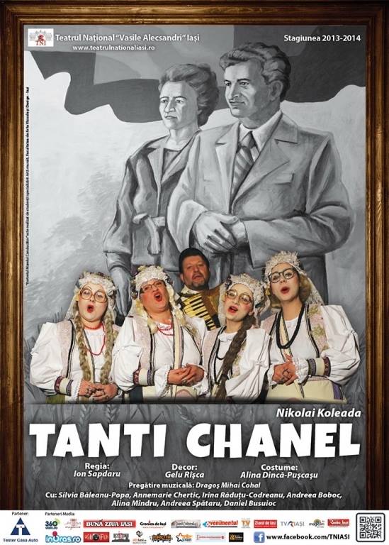 Teatrul National “Vasile Alecsandri” Iasi anunta, prin directorul general Cristian Hadji-Culea, “un pachet de trei premiere” in nu mai putin de o saptamana. Prima premiera este Tanti Chanel, un spectacol de Ion Sapdaru, ce va avea loc pe 10 aprilie, de la ora 19:30, in Sala Uzina cu teatru. Urmatoarele reprezentatii sunt programate pentru 3 mai, 7 si 12 iunie. Update: in stagiunea 2014-2015, spectacolul se joaca pe 21 noiembrie si 18 ianuarie, 17 aprilie, 16 mai, de la aceeasi ora.