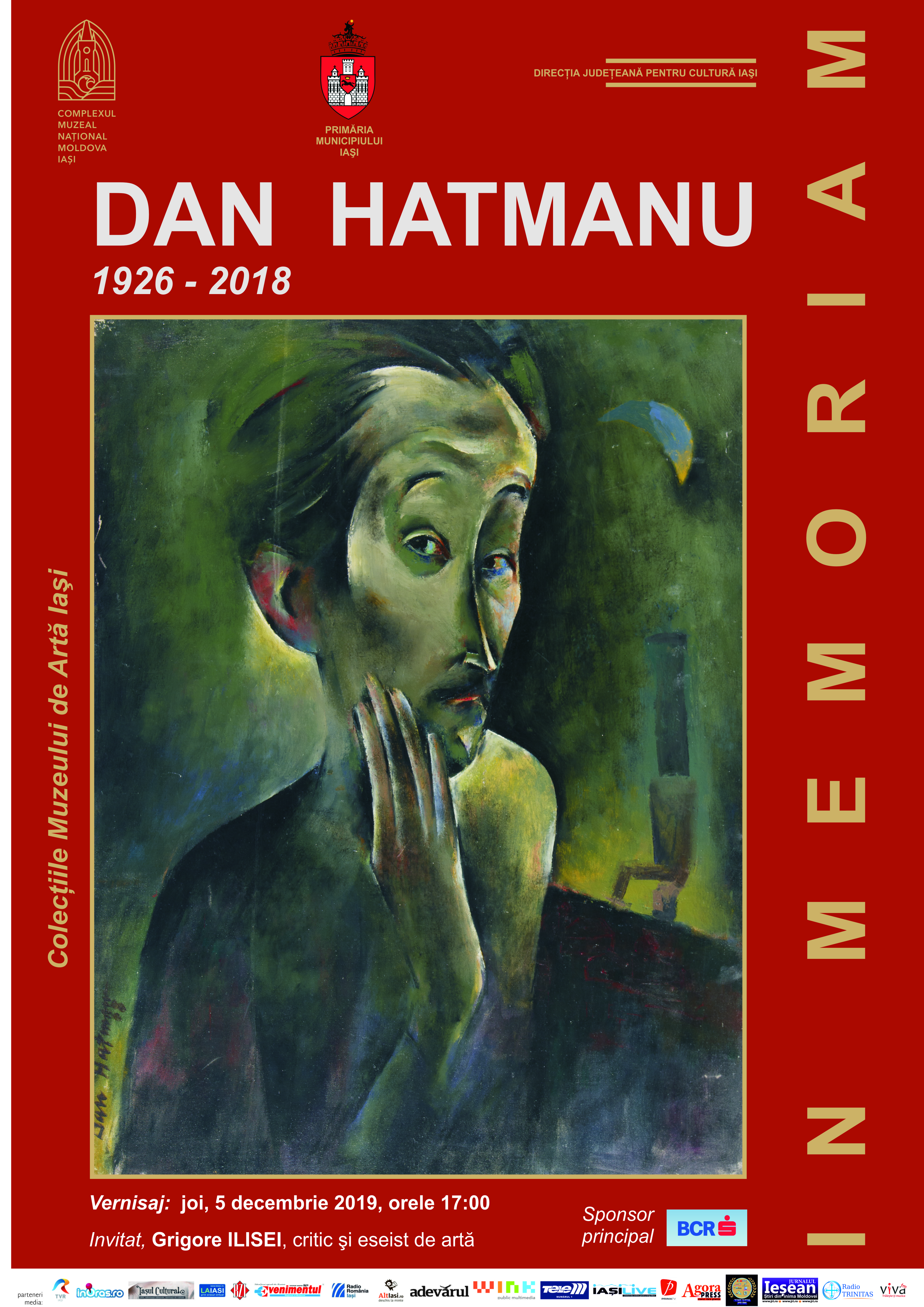 Muzeul de Artă din cadrul Complexului Muzeal Național „Moldova” Iași, în parteneriat cu Primăria Municipiului Iași și Direcția Județeană pentru Cultură Iași organizează, în perioada 5 decembrie 2019 – 31 ianuarie 2020, expoziția de pictură, grafică și structuri spațiale „Dan Hatmanu - In Memoriam”, cuprinzând lucrări din Colecția Muzeului de Artă Iași. Vernisajul va avea loc joi, 5 decembrie 2019, începând cu ora 17.00, expoziția fiind prezentată de scriitorul Grigore Ilisei, critic și eseist de artă.