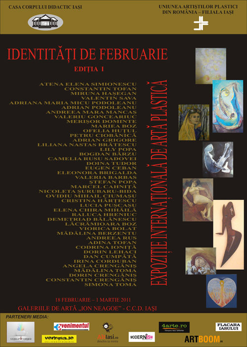 Galeriile de Arta „Ion Neagoe” – Casa Corpului Didactic Iasi gazduiesc prima editie a expozitiei internationale de arta plastica „Identitati de februarie” in perioada 18 februarie – 1 martie 2011.
