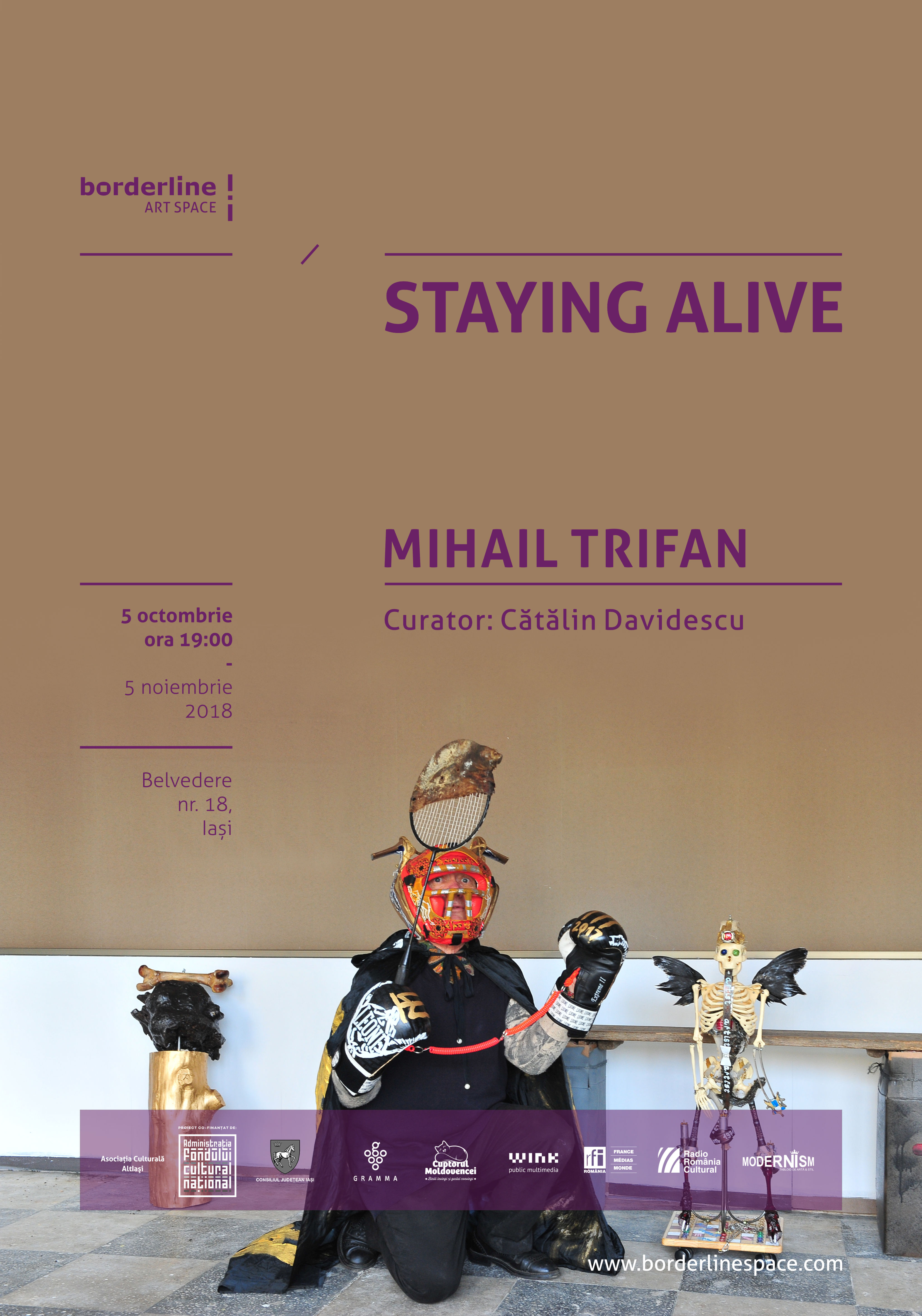 Pentru expoziția personală „Staying Alive” deschisă la Borderline Art Space în perioada 5 octombrie - 5 noiembrie, artistul craiovean Mihail Trifan expune pentru prima dată în Iași lucrări din diferite etape ale creației sale (pictură, sculptură, instalație). Vernisajul are loc în prezența artistului, însoțit de curatorul Cătălin Davidescu, vineri, 5 octombrie, începând cu ora 19:00, odată cu debutul Nopții Albe a Galeriilor din Iași. Înainte de vernisaj, artistul va susține un performance în autobuzul Linia 1 a culturii ieșene, proiect derulat în colaborare cu FILIT și FITPTI, care își propune să lege simbolic cele 3 evenimente care se desfășoară la Iași în aceeași perioadă.