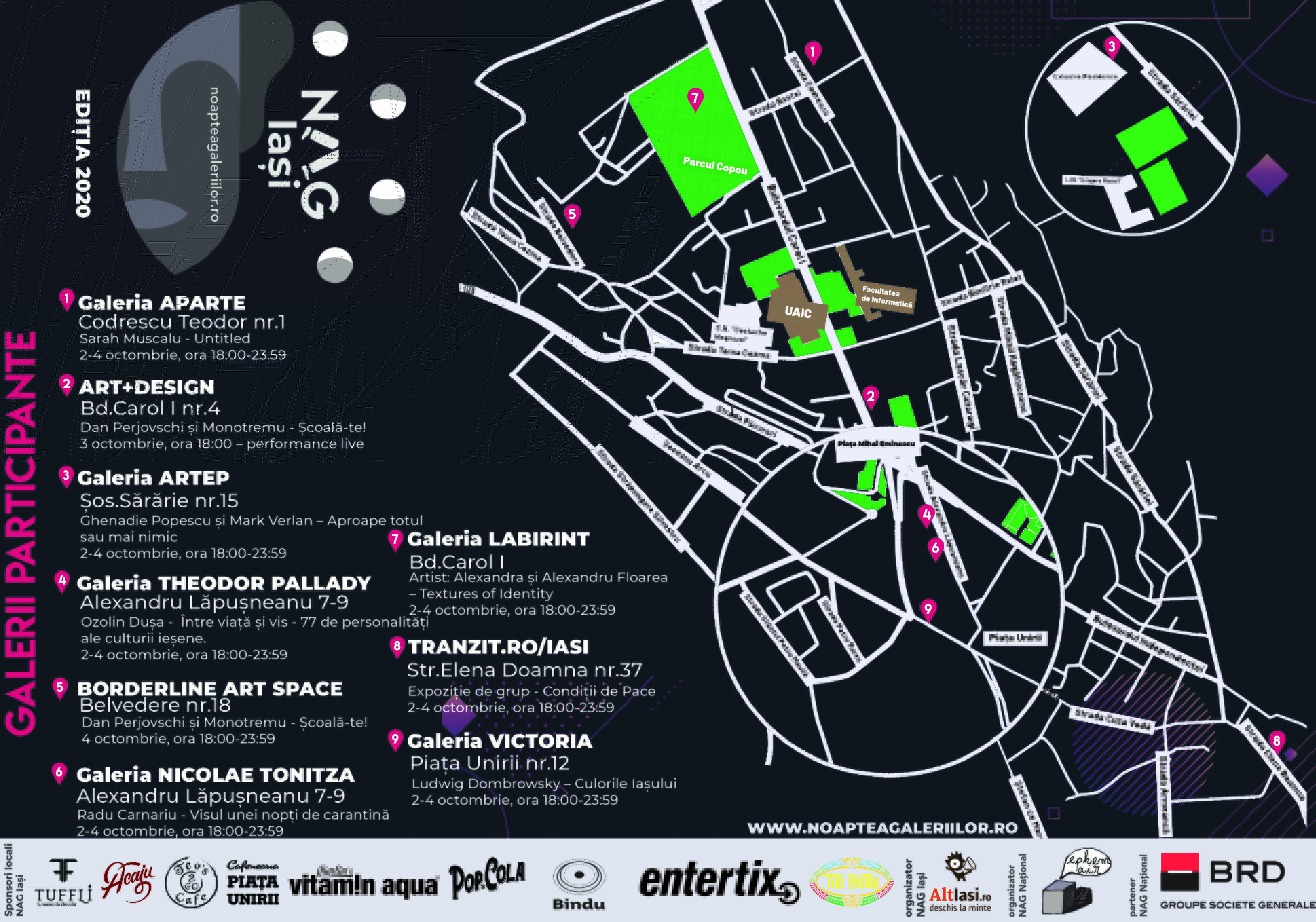 Parteneri NAG Iași: Entertix.ro, Bindu, Acaju, Cafeneaua Piața Unirii, Vitamin Aqua, Tuffli, Teo’s Cafe, UAP Iasi, Printco, WINK Public Multimedia.