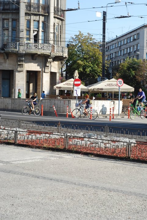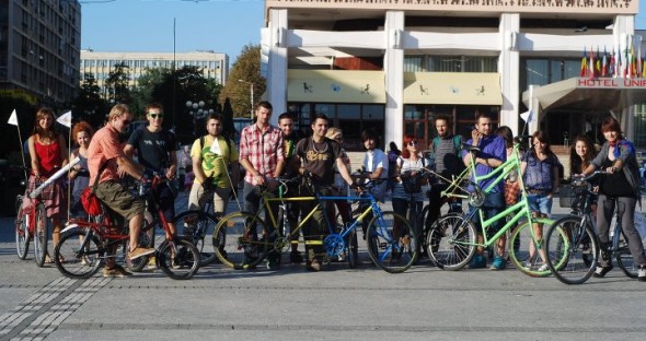 Sa nu credeti insa ca a fost numai o joaca si o distractie, pentru ca ar insemna sa ignorati munca din spatele acestui proiect. Si joaca trebuie organizata, si joaca presupune sa ai spatiu, instrumente, resurse. Eventualii curiosi care ar fi putut sa treaca pe langa Baia Turceasca sambata si duminica ar fi vazut o curte plina de piese de biciclete si de voluntari papergirl care asamblau, modificau, ajustau si sudau cele cateva biciclete reciclate, necesare pentru distributia de duminica. In cadrul acestui atelier de « biciclete- mutant », s-au donat piese, s-a donat timp, s-a donat efort, s-a donat voie buna. Tot duminica, dupa ce o saptamana intreaga lucrarile care au fost expuse in doua din incaperile Baii au asistat la proiectii (vizuale si/sau de film), a venit si momentul in care sa fie desprinse de sfori si carlige si sa fie impartite in pachete- surpriza. Si la asta s-a muncit cu placere, din cand in cand auzindu-se in sala cate o exclamatie spontana, pe un ton pe jumatate invidios: Ce norocoasa e persoana care o s-o primeasca pe asta !