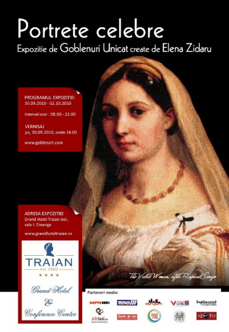 Intre 30 septembrie - 2 octombrie, Grand Hotel Traian va gazdui expozitia de goblenuri unicat "Portrete celebre" create de Elena Zidaru.