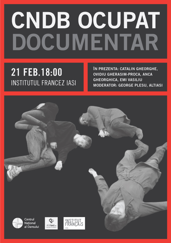 Pe 21 februarie, de la ora 18, va avea loc la Institutul Francez din Iasi proiectia filmului CNDB Ocupat: Documentar (2012), regizat de colegul nostru, Emi Vasiliu. Proiectia va fi urmata de o dezbatere, in cadrul careia invitatii Catalin Gheorghe, Ovidiu Gherasim-Proca, Anca Gheorghica si Emi Vasiliu vor discuta relevanta formelor de protest si de atitudine civica in contextul chestiunilor ce vizeaza comunitatile locale. Discutia va fi moderata de George Plesu. Intrarea este libera.