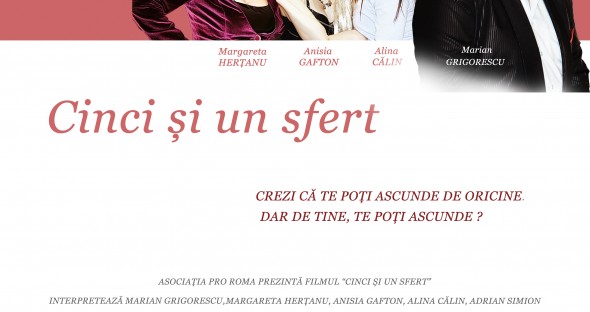Asociatia Pro Roma lanseaza campania intitulata “Lumea mea e lumea ta” prin prezentarea, in premiera, a scurt metrajului “Cinci si un sfert”. Evenimentul are loc joi, 5 Aprilie, de la ora 17:00, la Hotel Ramada, in sala New York.