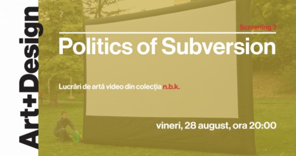 Spațiul cultural hibrid Art+Design organizează, în parteneriat cu Neuer Berliner Kunstverein (n.b.k.) și Centrul Cultural German Iași, o serie de 6 sesiuni de proiecții din arhiva n.b.k., cel mai mare colecționar de artă video din Europa. Programul continuă vineri, 28 august, de la ora 20:00, cu o selecție intitulată „Politics of Subversion. The agency of art in the sphere of politics”, prezentată de artistul și curatorul Dan Acostioaei.