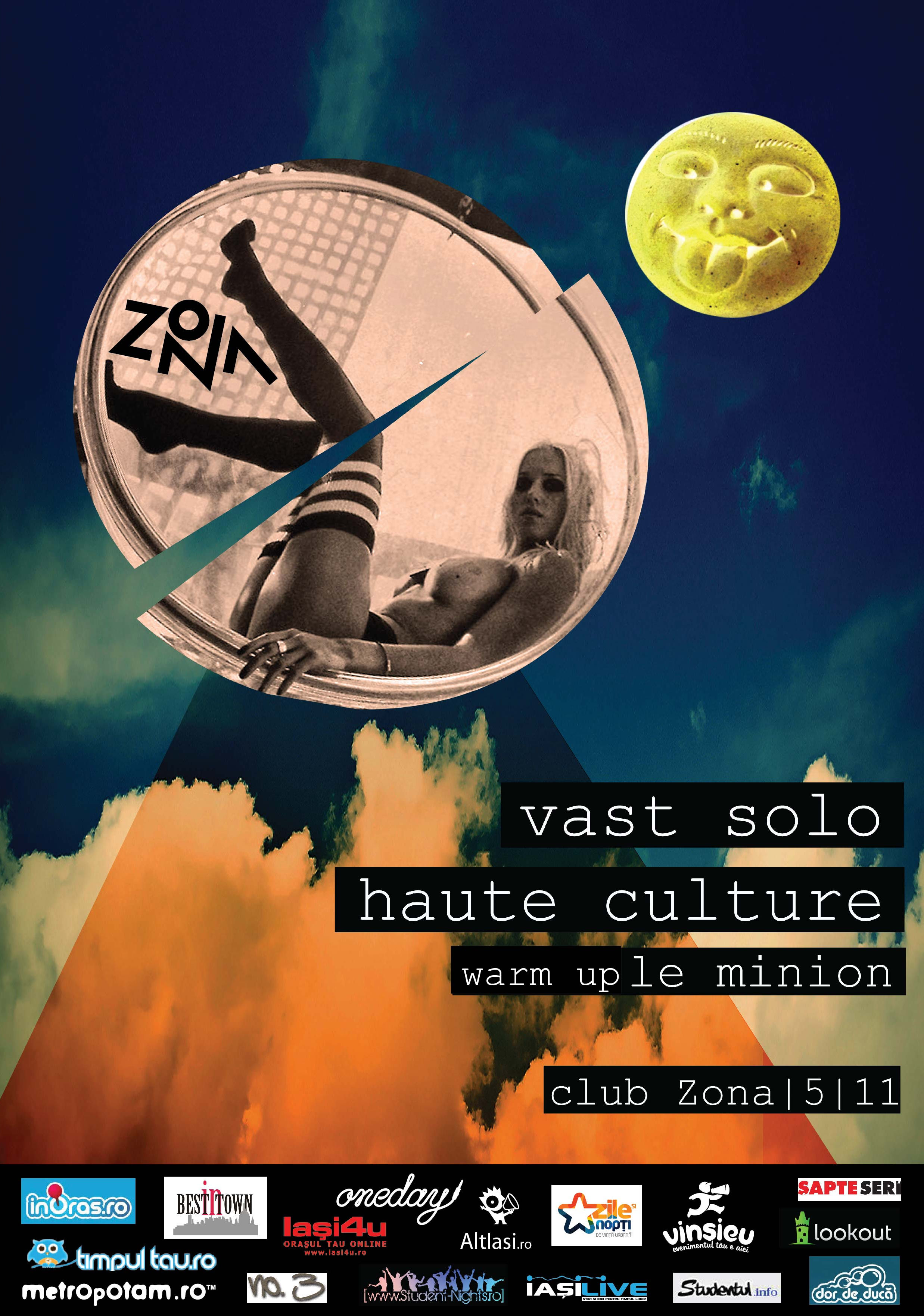 Sambata, 5 noiembrie, incepand cu ora 23:00, clubul Zona vibreaza in sound de nu-elektro/disco, deep house, nu-chicago & detroit, chiar si nu-funk, cu HAUTE CULTURE / VAST SOLO / LE MINION.