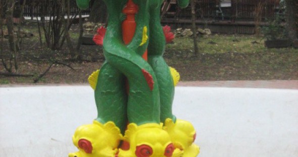 In plimbarile prin Parcul Expozitiei gasiti pe una dintre alei o fantana arteziana. Cromatica aprinsa cu belsug de rosu, galben si verde trimite cu gandul spre stampele chinezesti cu dragoni si flori exotice. Poate fi privita ca o ciudatenie intr-un oras cu parcuri de traditie franceza si engleza, cu fantani si statui de bronz sau piatra (necolorate).