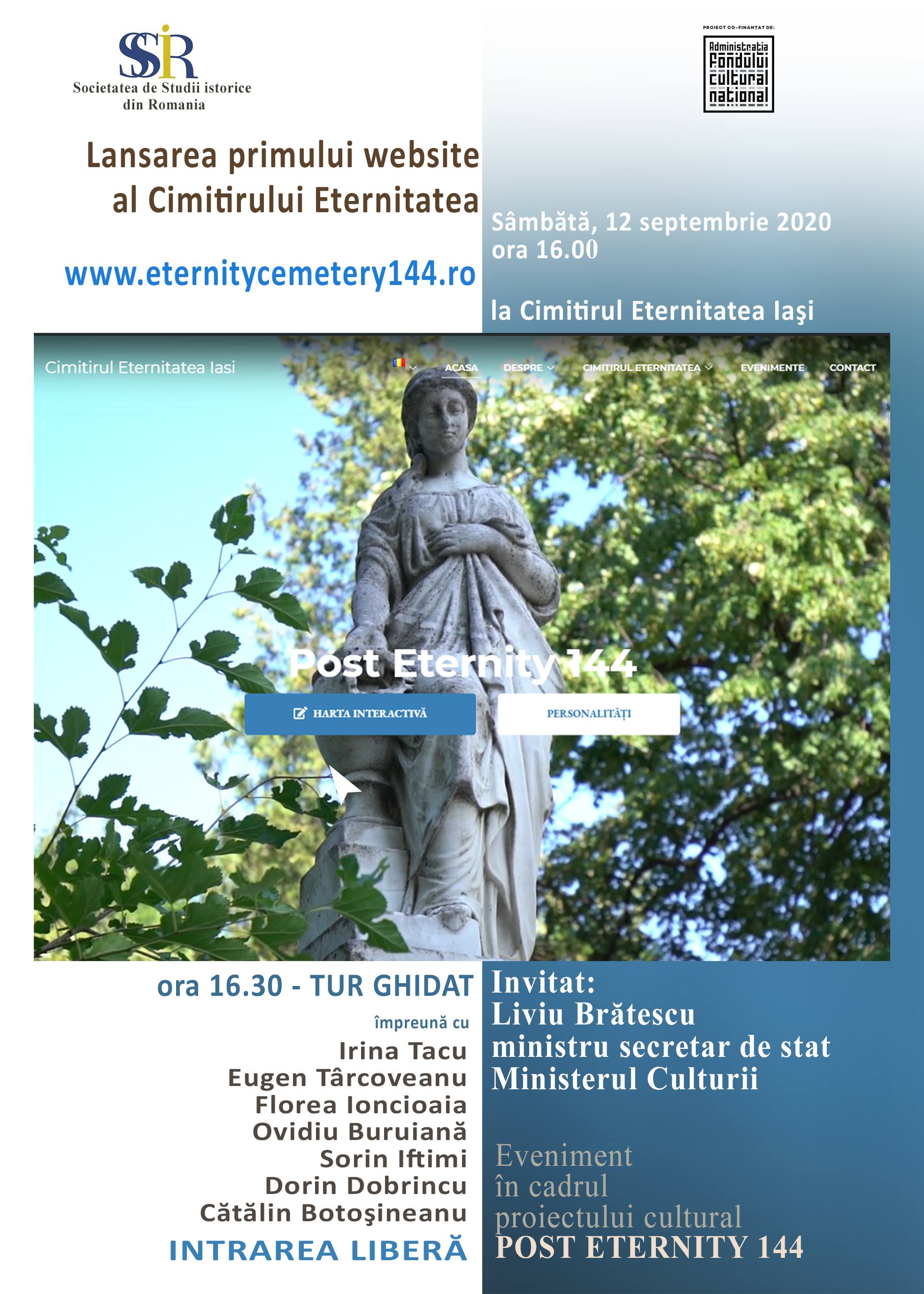 Sâmbătă, 12 septembrie 2020, la ora 16.00, în Cimitirul Eternitatea Iaşi, va avea loc un eveniment necesar şi aşteptat atât pentru comunitatea ieşeană cât şi pentru România - lansarea primul website al Cimitirului Eternitatea dedicat celor mai importante personalităţi înhumate în acest loc (Ion Creangă, George Topârceanu, Mihail Kogălniceanu, Gheoghe Mârzescu, Vasile Pogor, Petre Andrei, Ştefan Procopiu, Otilia Cazimir, Petru Poni şi mulţi, mulţi alţii).