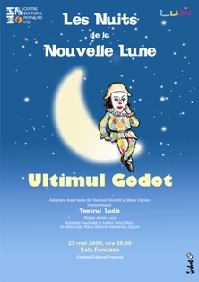 Piesa a fost regizata sub forma unei intalniri dintre Vagabondul Godot si autorul Beckett dupa ce au fost izgoniti de la teatru. Motivul invocat a fost acela al inexistentei teatrului ca institutie si arta, a efemeritatii acestuia. „Teatrul nu mai exista!” devine, astfel, declicul intregii actiuni, punct de pornire care va dezvolta pe parcursul intregii reprezentantii scenice o comuniune catre pasiunea pentru arta teatrala si catre respectul pentru umanitate in forma sa autentica.