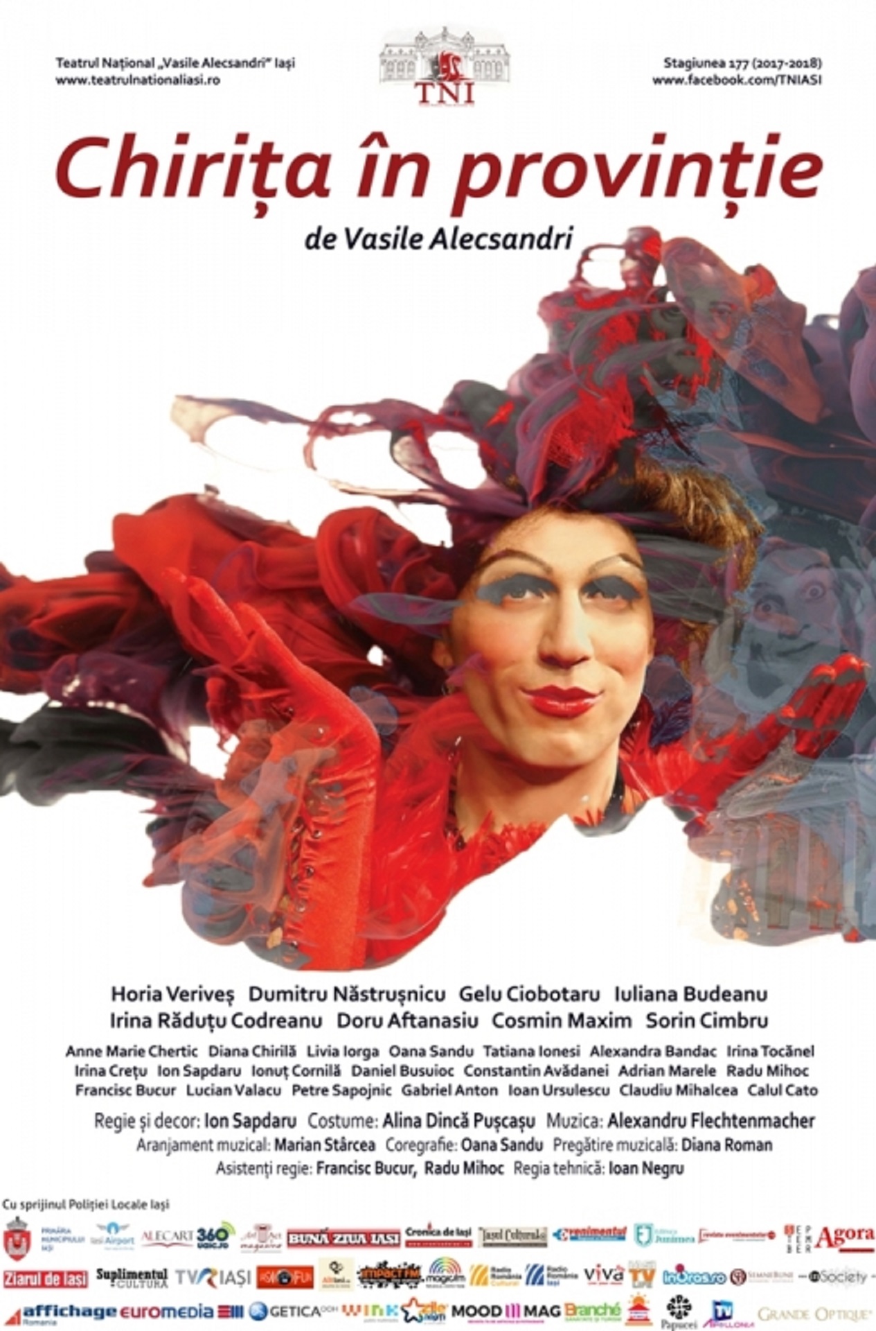 Dupa premiera de pe 11 si 12 noiembrie, pe 21 noiembrie, 1 și 3 decembrie 2017, 24 aprilie 2018, la Sala Mare, un eveniment de exceptie pe scena Teatrului National Iasi: celebra Chirita în provinție de Vasile Alecsandri se intoarce după 20 de ani! Dupa montarea lui Ion Sapdaru a „Chiritei în provintie” din 1997 și la 165 de ani de la premiera comediei care l-a avut pe Matei Millo în rol principal, regizorul spectacolul propune o Chirită a generatiei sale. Update: spectacolul se joacă din nou pe 1 și 18 februarie, respectiv 3 și 5 martie 2019, 3, 16 și 19 mai, 21 iunie 2019, de la aceeași oră.