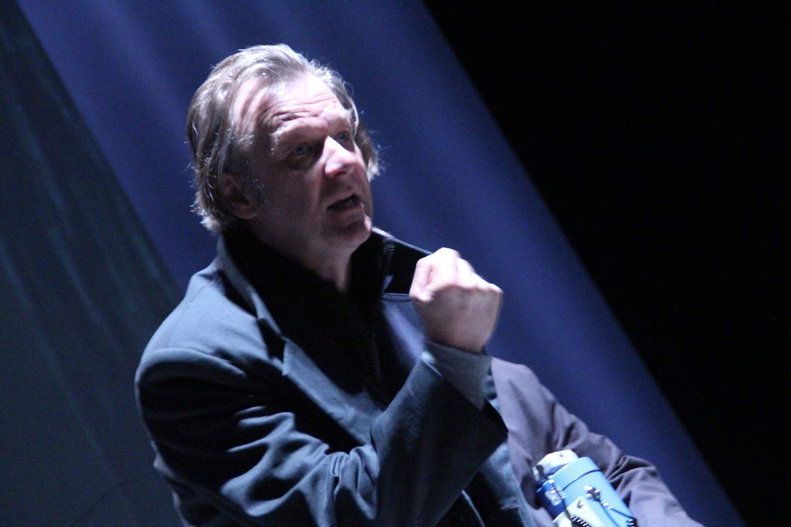 Un dusman al poporului mizeaza pe un stil mai putin practicat la Sala mare a Teatrului, un stil in care psihologizarea e mult interiorizata, facandu-i-se loc subiectului dezvoltat ca intr-un dosar, ca intr-un reportaj – cu evidenta distanta. Senzatia apropierii dintre teatru si film este pregnanta. Textocentrist, Claudiu Goga alege o regie mininala, axata, asa cum ne-am obisnuit, pe munca in filigran cu actorul. Insa, de data aceasta, emotiile nu prea transpar pe scena, totul se consuma la interior; pauzele, jocul privirilor si cuvintele rostite pe tonalitate joasa sunt cele mai importante. Distantarea prin care criticii i-au etichetat adesea textele lui Ibsen este efectul prioritar scontat, spectacolul devenind o insiruire de tablouri realiste, ca o relatare in care conteaza, in primul rand, ce se spune. In acest peisaj plat, exista cateva modulatii plasate cu rost, scurte inflexiuni, vibratii, deritmari in care filmul parca se topeste, iar personajele nu mai au puterea de a-si stapani lacrima, sclipirea, irascibilitatea. Scenografia ajuta enorm la crearea impresiei de uniformitate si de repetitie a planurilor identice. Sub semnatura lui Andu Dumitrescu, spatiul este cel al volumelor simple, taiate drept, al culorilor terne, din gama bleu-urilor prafuite, cenusiu, negru. Casa, orasul, redactia toate locatiile se aseamana, stergerea individualitatii fiind unul dintre sensurile dictate. Aparent ordonate, intacte si curate, obiectele sufera transformari in acelasi timp cu turnura negativa pe care evenimetele o iau. Dezordinea, fisurile, cioburile si elemente intruzive pun stapanire progresiv, deformand tabloul scenic. Videoproiectiile sunt, insa, fie redundante (masinile de scris ce apar in imagine cand actiunea se petrece in redactia ziarului), fie inestetice (cum e ploaia in episodul discursului din gradina lui Horster).