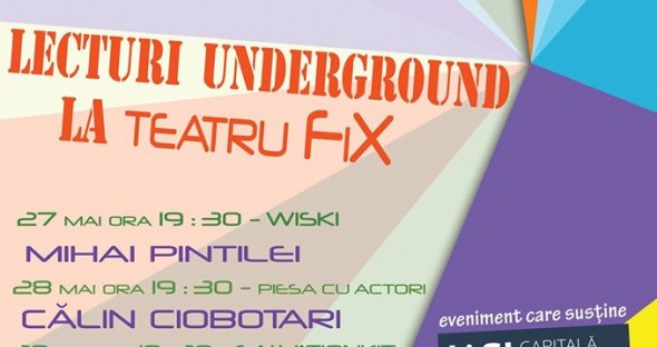 Intre 27 si 29 mai 2015, publicul iesean va face cunostinta cu trei autori dramatici contemporani si textele lor, prezentate de 9 actori independenti. Lecturi Underground la Teatru FiX isi propune sa aduca in fata publicului iesean trei texte ale autorilor Mihai Pintilei, Calin Ciobotari si Peca Stefan, a caror lectura va fi in premiera la Teatru FiX.