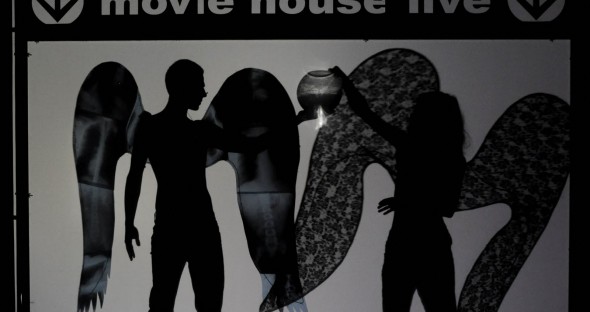 Pana la urma - caci vorbeam de delimitarea planurilor - realitatea lor e imaginar pentru noi si invers. Ecranul pentru proiectii este bine pus in valoare si in scena in care se joaca in spatele sau. De data aceasta Ingerii au aripi detasate de corp, de parca ar vrea sa-si ia zborul dupa ce beau potiunea magica, dar apare Diavolul care le strica jocul. Din nou regizorul se joaca cu simbolurile, aripile reprezentand capacitatea de a calatori intre taramul uman si celalalt, eliberarea de materie si mortalitate, aripile desfacute pot fi un semn de protectie, fiind insemne ale fiintelor supranaturale. Bolul, de asemenea, privit de grecii si romanii antici ca obiect in care puneau ofrandele, a ajuns in arta vestica simbol al sacrificiului ritual.
