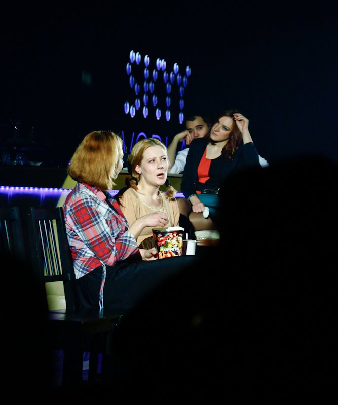 Si pentru ca nu ma pot abtine, am sa vorbesc foarte putin despre locatie. Verve nu intra in categoria barurilor in care se mai joaca teatru, pentru ca daca in celelalte publicul e diferit fata de cel de la Ateneu sau de la Teatrul National, atunci aici se naste o noua grupa. Marii regizori chemau la un momentat dat copii sau tineri care n-aveau de-a face cu teatrul la o repetitie deschisa pentru a le observa reactiile si apoi sa isi dea seama ce au de modificat sau de imbunatatit. Publicul din acest tip de spatiu dispune de aproape aceeasi sinceritate BRUTala si de aceleasi reactii BRUTe. Mi se pare un test foarte bun prin care poate trece un spectacol, mai ales unul contemporan.