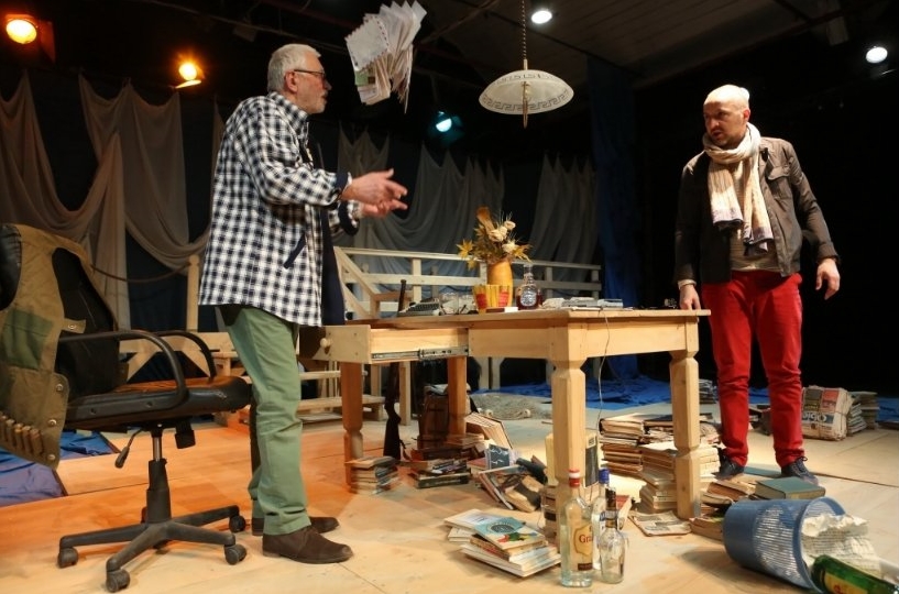 Emil Coseru ii confera personajului sau, Abel Snorko, un aer de agasanta superioritate, de exagerata infatuare. Un scriitor nesatul de propriul geniu care nu crede in modelul clasic al dragostei si care prefera sa iubeasca femeile exclusiv pentru trupurile lor („Dragostea nu este altceva decit o perversiune a sexualitatii”). Octavian Jighirgiu, pe de alta parte, interpreteaza rolul unui om obisnuit (Erik Larsen), aparent banal; un personaj gri, usor ezitant, dar mereu umil in fata marelui scriitor. Apare ca un personaj subestimat si autosubestimat inca de la inceput. Jocul ambilor actori este corect, prezinta chiar momente de teatru adevarat, caci cei doi isi construiesc personajele folosindu-se de puternice emotii care se rasfrang, mai apoi, si in rindul spectatorilor.